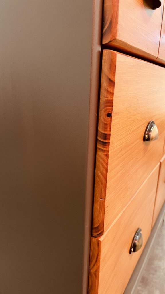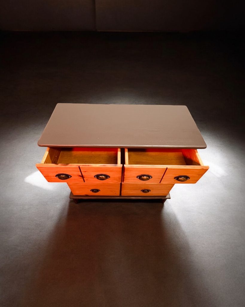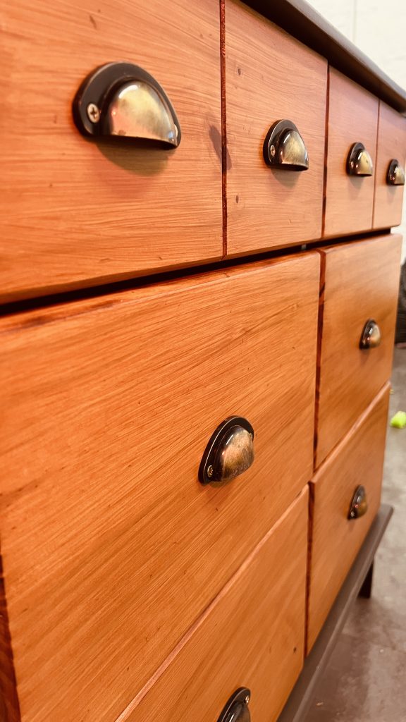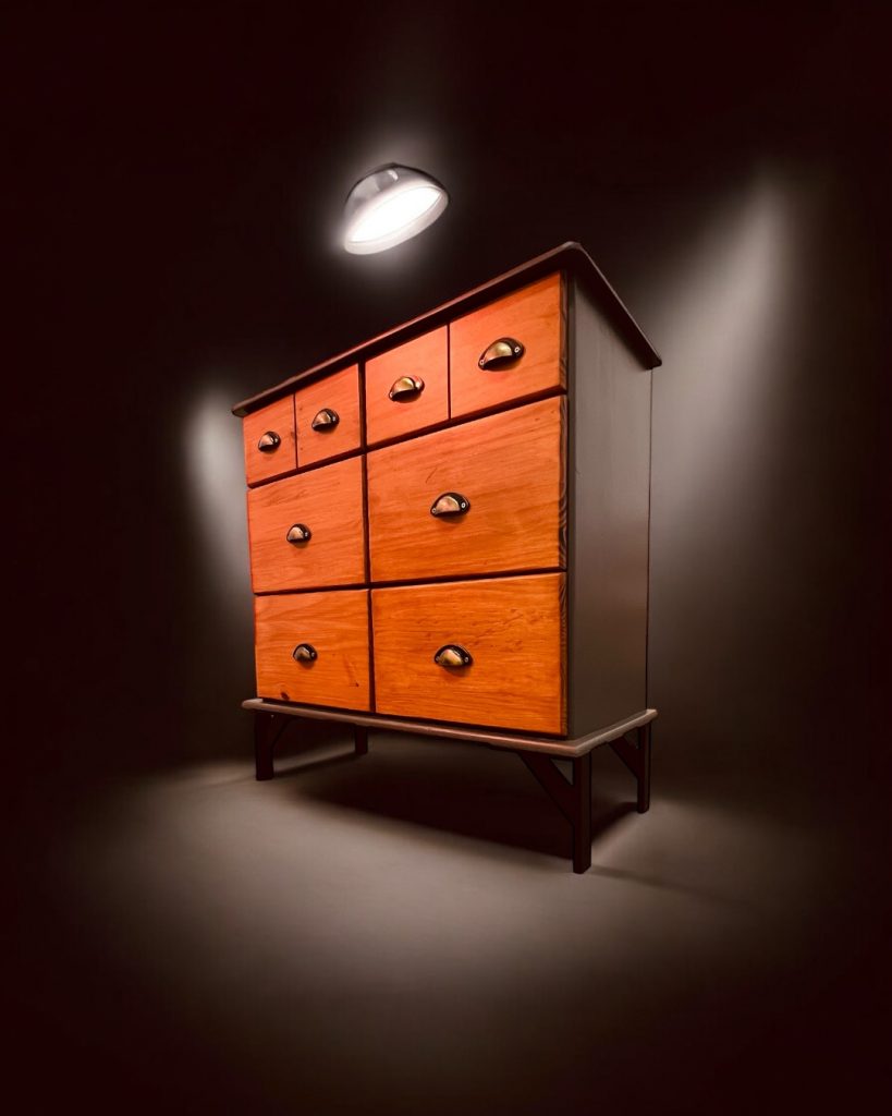 • Schubladen gebeizt, Kanten bewusst angebrannt für Tiefe und Charakter