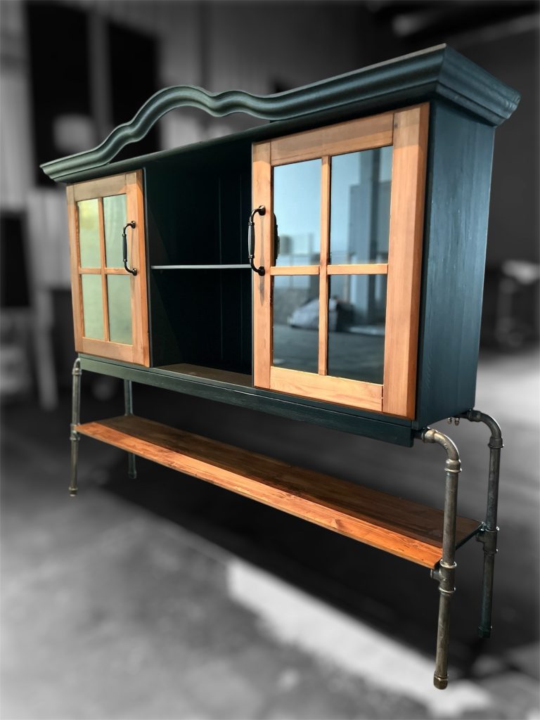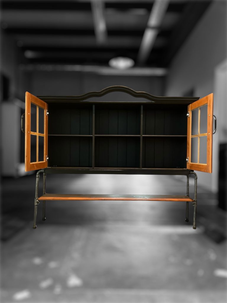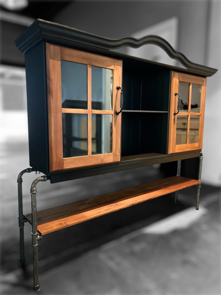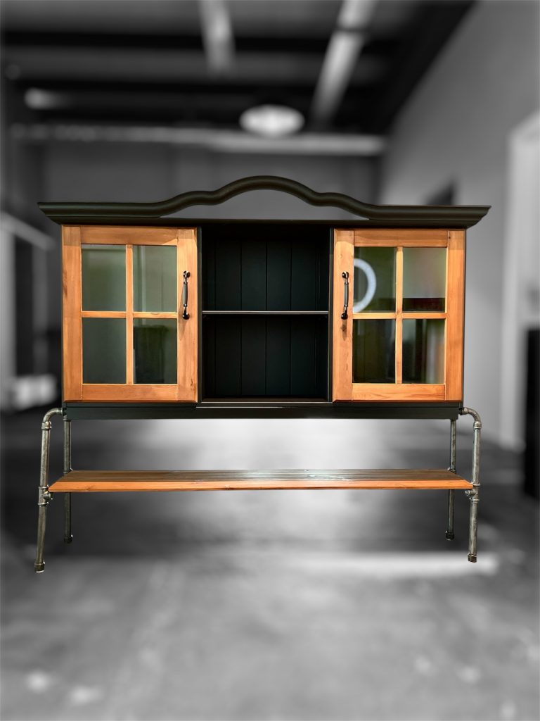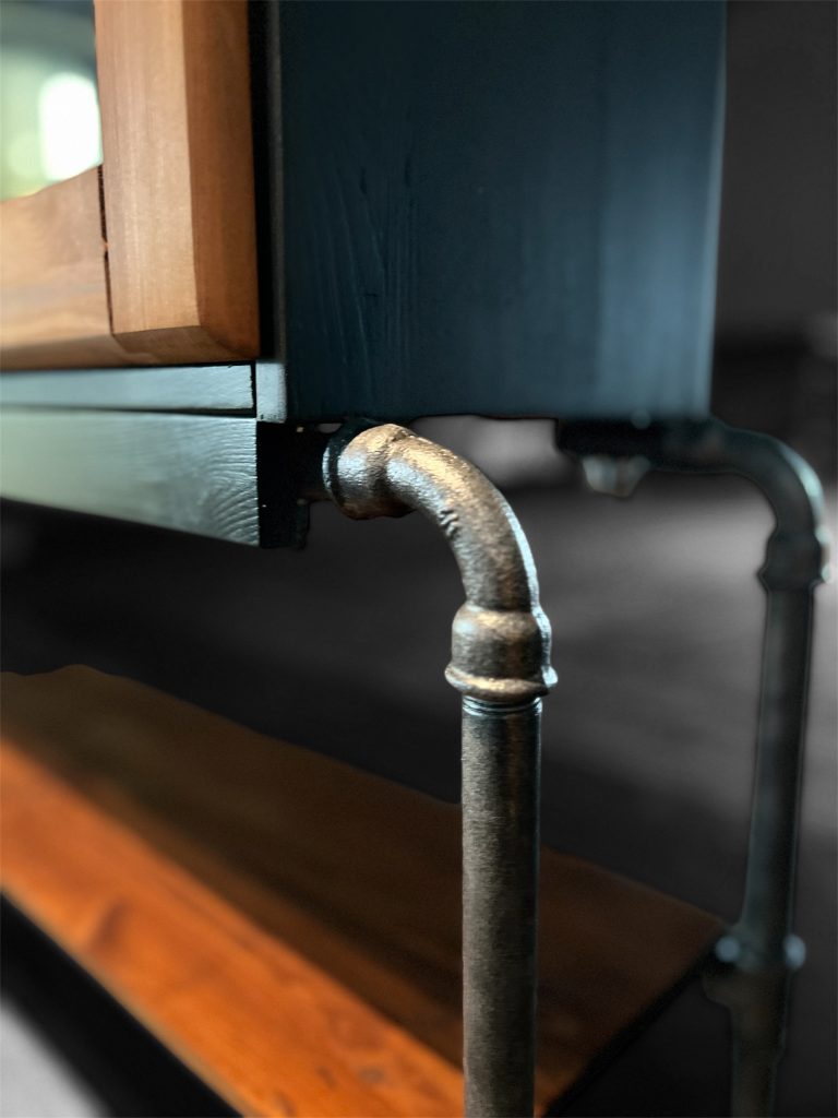 „Bernd“ ist ein echtes Einzelstück mit Geschichte. Die Kommode wurde von mir vollständig neu gestaltet: Der ursprüngliche Oberschrank bekam neue Beine aus alten Wasserrohren – robust, markant und voller Charakter. Der Korpus wurde außen in elegantem Schwarz lackiert, das Innere strahlt in modernem Anthrazit.