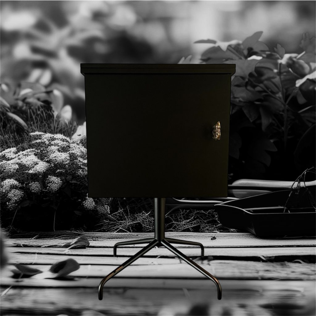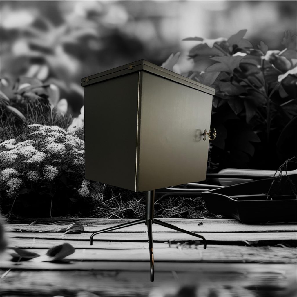 Außen in edlem „Soot Black“, innen in tiefem Petrol Green – ein spannender Kontrast, der Retro-Charme und modernes Design vereint. Durch den neuen Drehfuß lässt er sich flexibel ausrichten, die LED-Beleuchtung mit Bewegungsmelder sorgt für stimmungsvolles Licht, und die Glasplatte gibt den Blick auf die dekorative Rückwand frei.