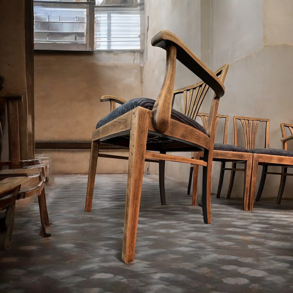 Hinweis: Die Stühle wurden upgecycelt. Durch die handwerkliche Aufarbeitung können leichte Farb- oder Strukturunterschiede im Holz entstehen.