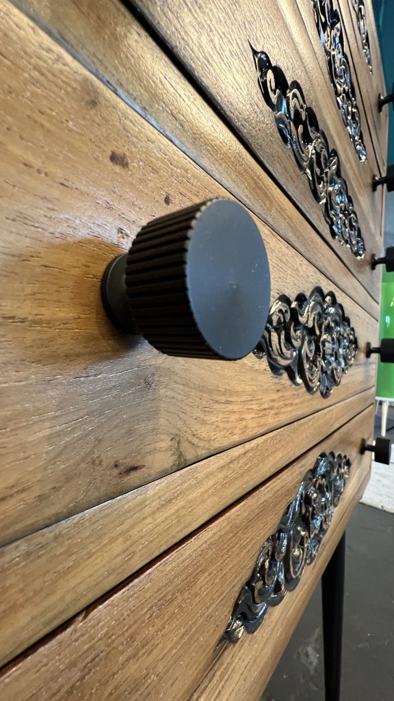 Clara Spiegelblick ist nicht einfach nur eine Kommode – sie ist ein elegantes Einzelstück, das dein Zuhause mit Stil empfängt. Das Zusammenspiel aus warmem Holz, detailverliebten Metallverzierungen und dem runden Spiegel macht sie ideal für den Flur, aber auch für Schlafzimmer, Ankleide oder Lieblings-Ecke.
