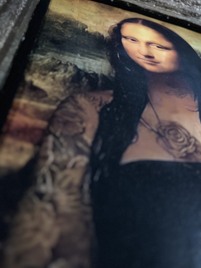 Die Mona Mona – rebellisch, selbstbewusst, tätowiert. So könnte sie heute aussehen. Dieses Bild ist ein witziger und zugleich kraftvoller Dialog zwischen klassischer Kunst und moderner Selbstdarstellung.