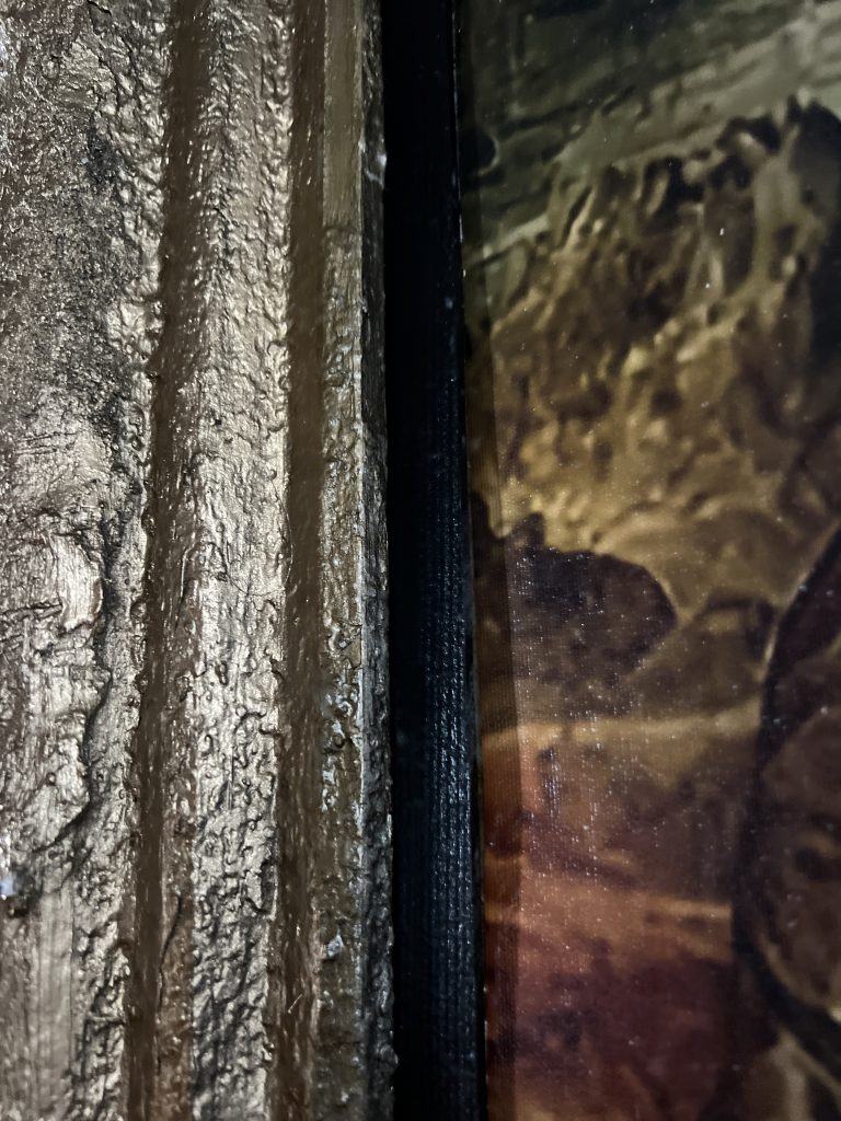 Der Rahmen? Fast 100 Jahre alt – mit Geschichte, Ecken und Kanten. Von mir liebevoll restauriert und in neuem Glanz erweckt. Ein echtes Unikat mit Seele.