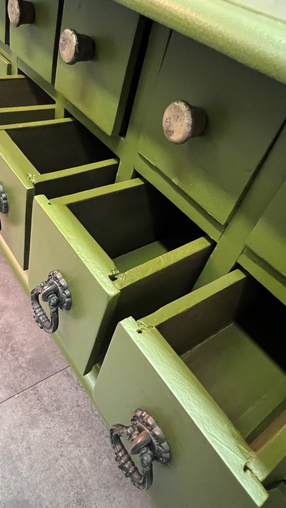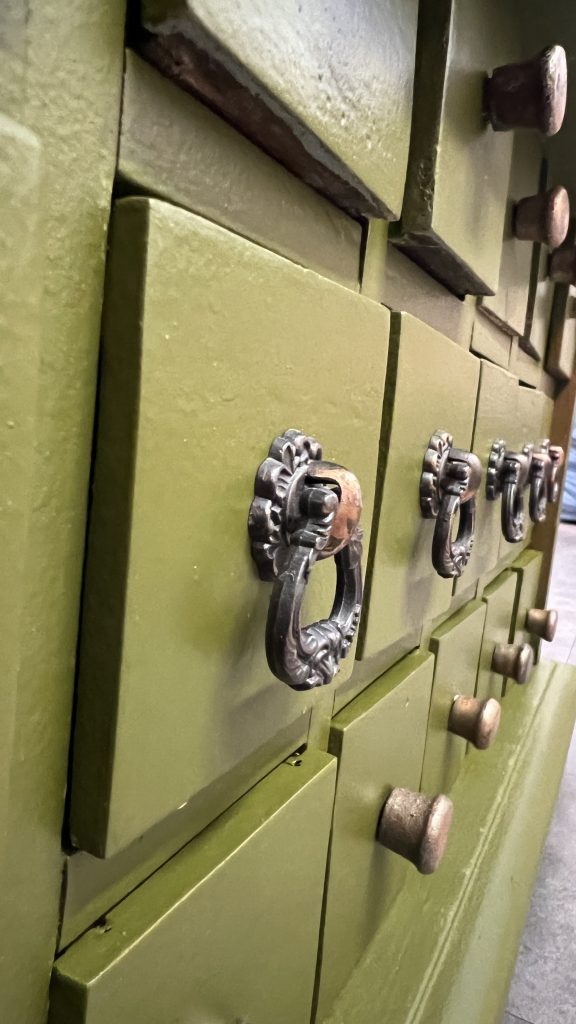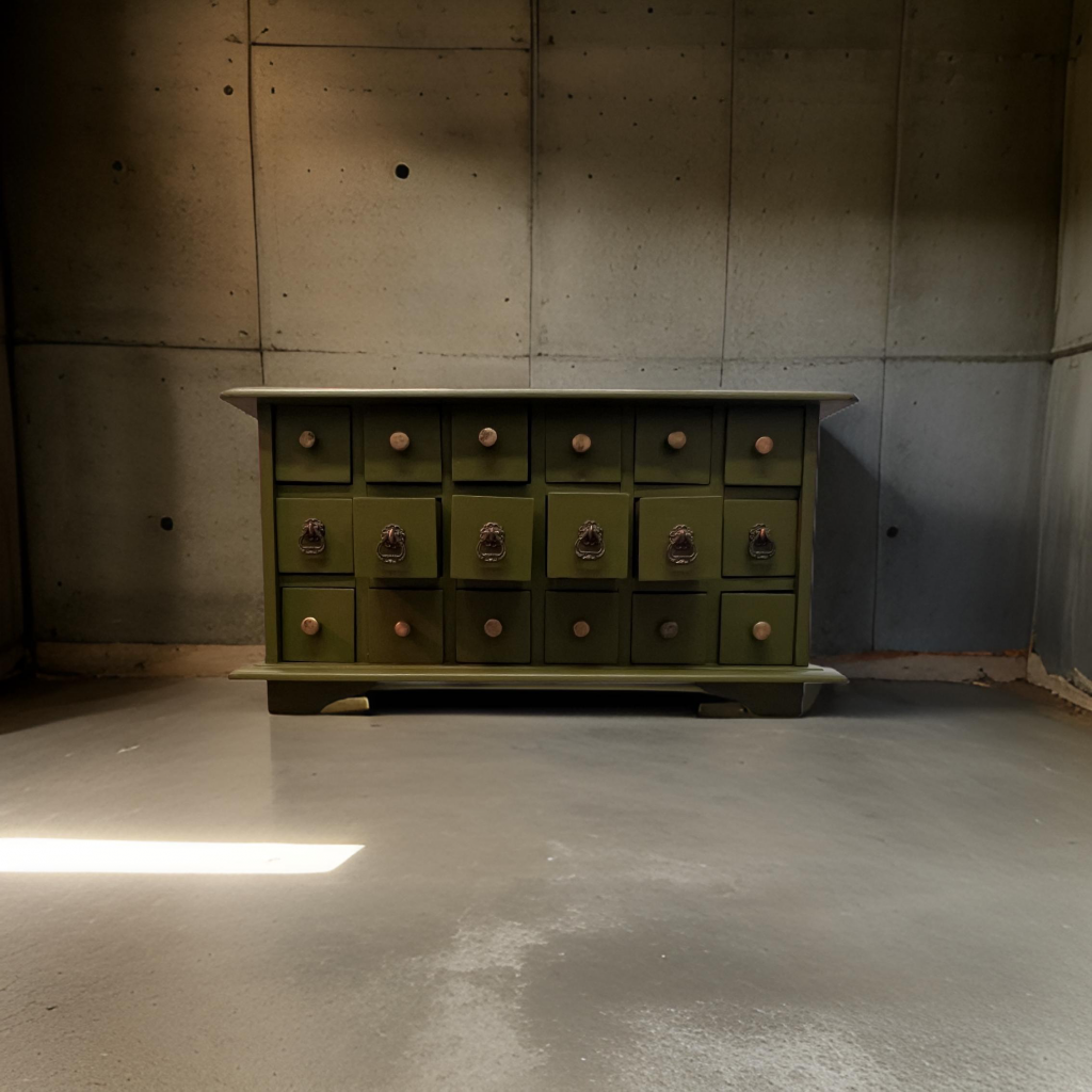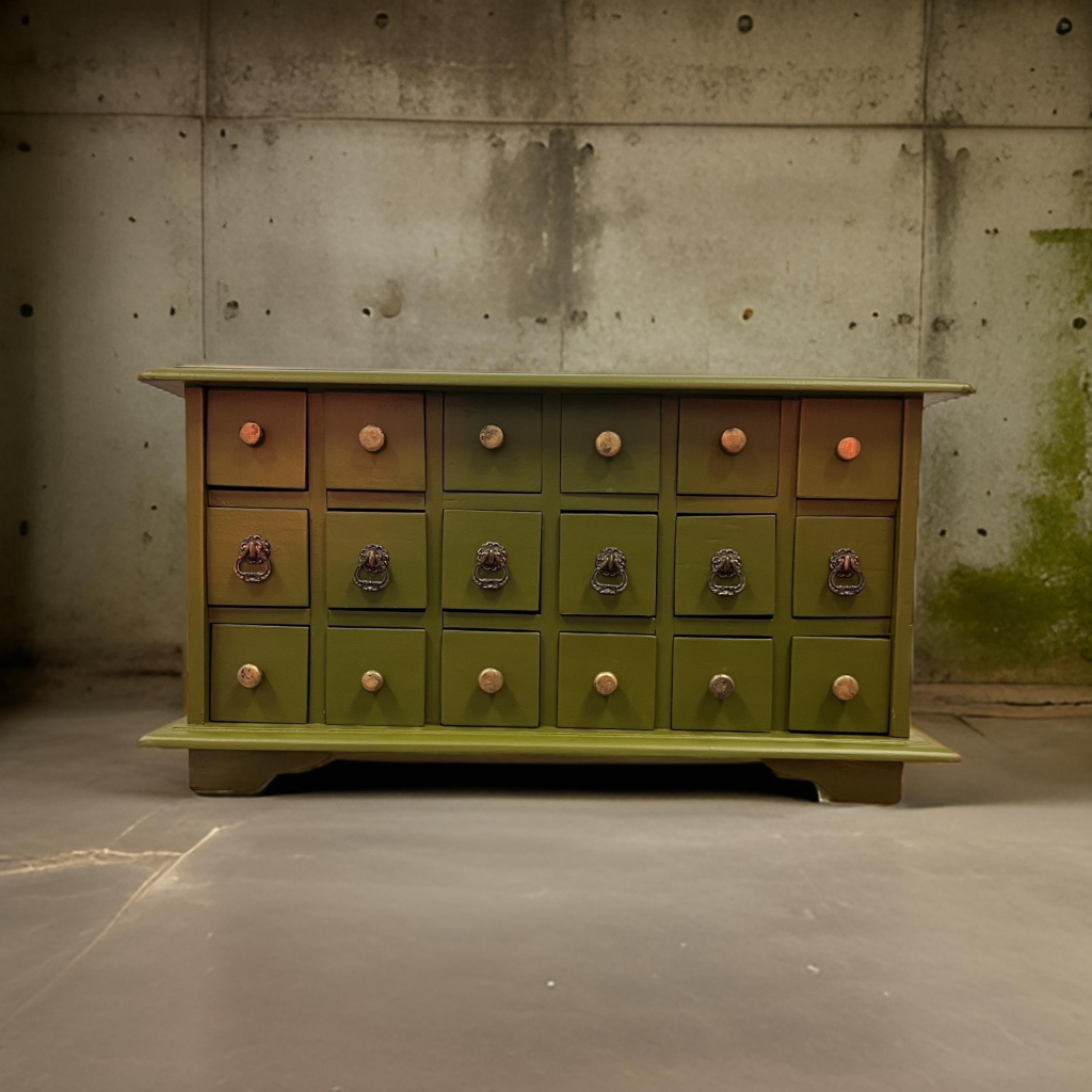 Dieses bezaubernde Schubladenmöbel mit nostalgischem Flair bringt nicht nur Ordnung, sondern auch Persönlichkeit in dein Zuhause. Der sanfte Olivton, kombiniert mit unterschiedlichen Griffen, macht „Olivchen“ zu einem echten Hingucker – egal ob im Flur, in der Küche oder im Kreativbereich. Jede der kleinen Schubladen wartet nur darauf, deine Schätze zu bewahren.