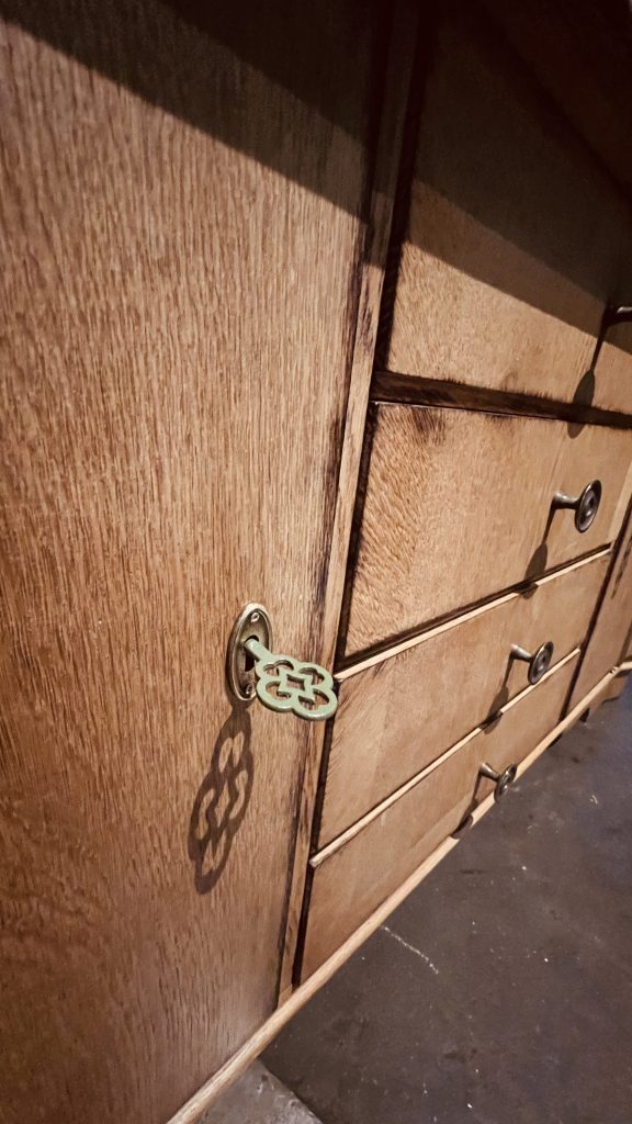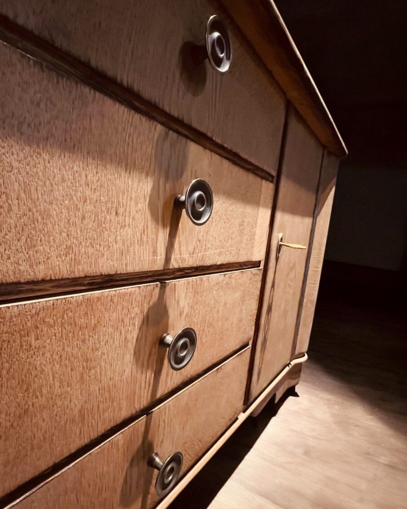 Der Schrank stammt aus dem Jahr 1939 und wurde vollständig auseinandergenommen, abgeschliffen und neu aufgearbeitet.