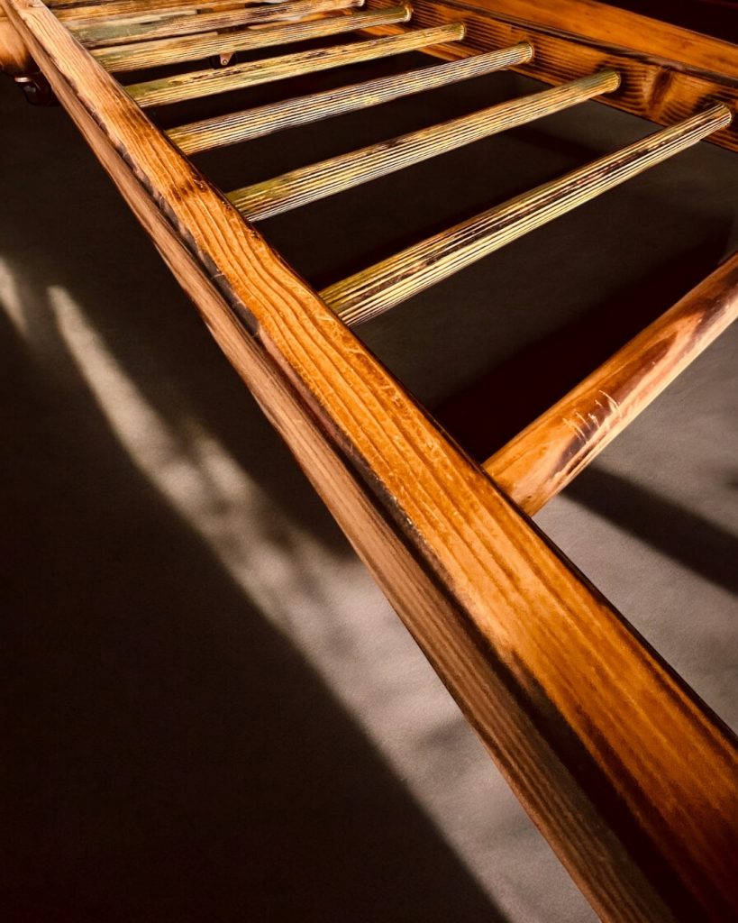 Da es sich um ein upgecyceltes Möbelstück handelt, können Farb-, Struktur- oder Materialunterschiede vorhanden sein. Diese sind Teil des Konzepts und stellen keinen Mangel dar.
