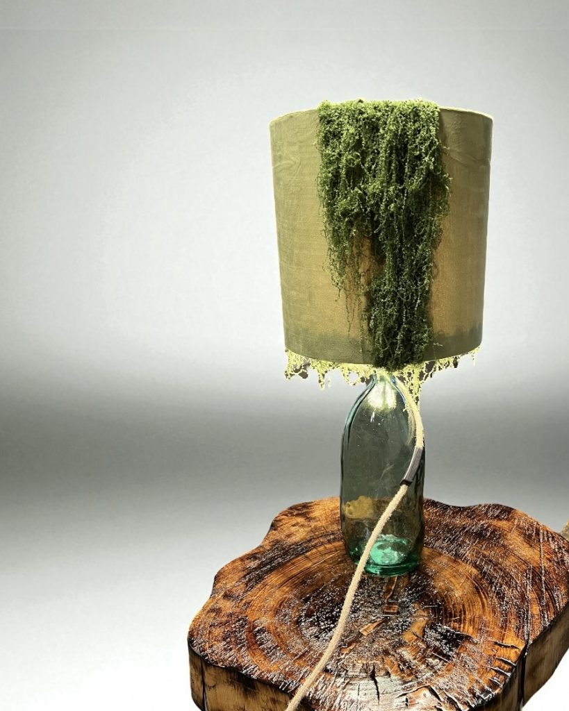 Diese beiden haben richtig Charakter: „Stammelotte“ kommt aus massivem Holz und bringt warme Natürlichkeit ins Zuhause. „Samtfried & Moosmarie“ sind ein charmantes Duo aus Flasche, Samtschirm und Moos – und sorgen für stimmungsvolles Licht.